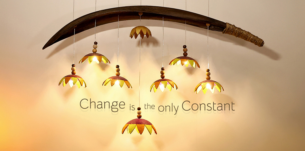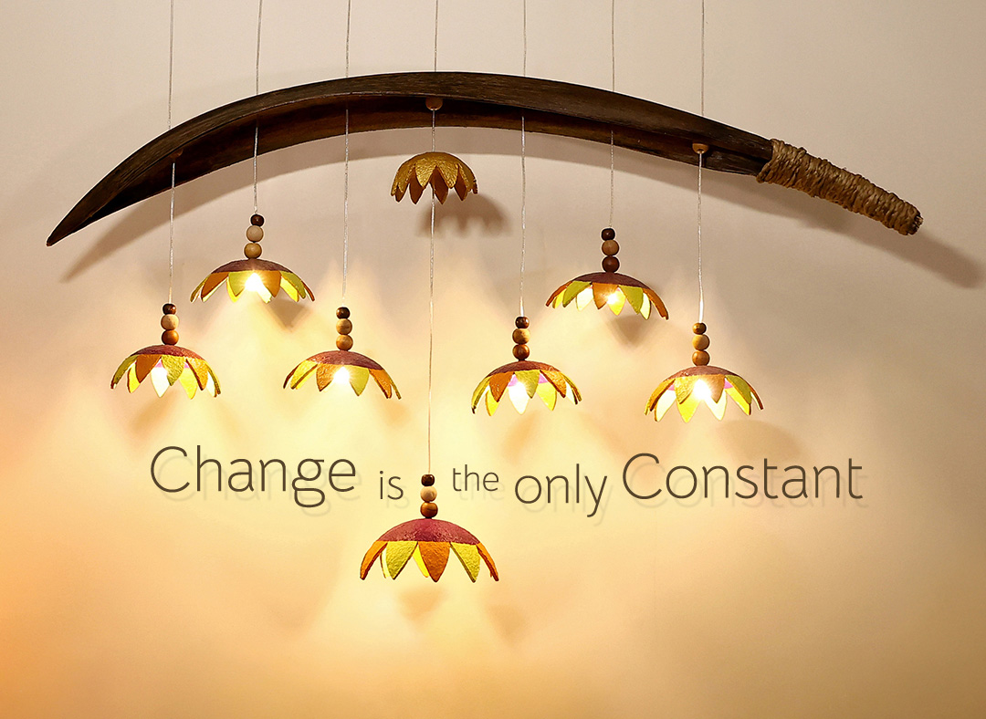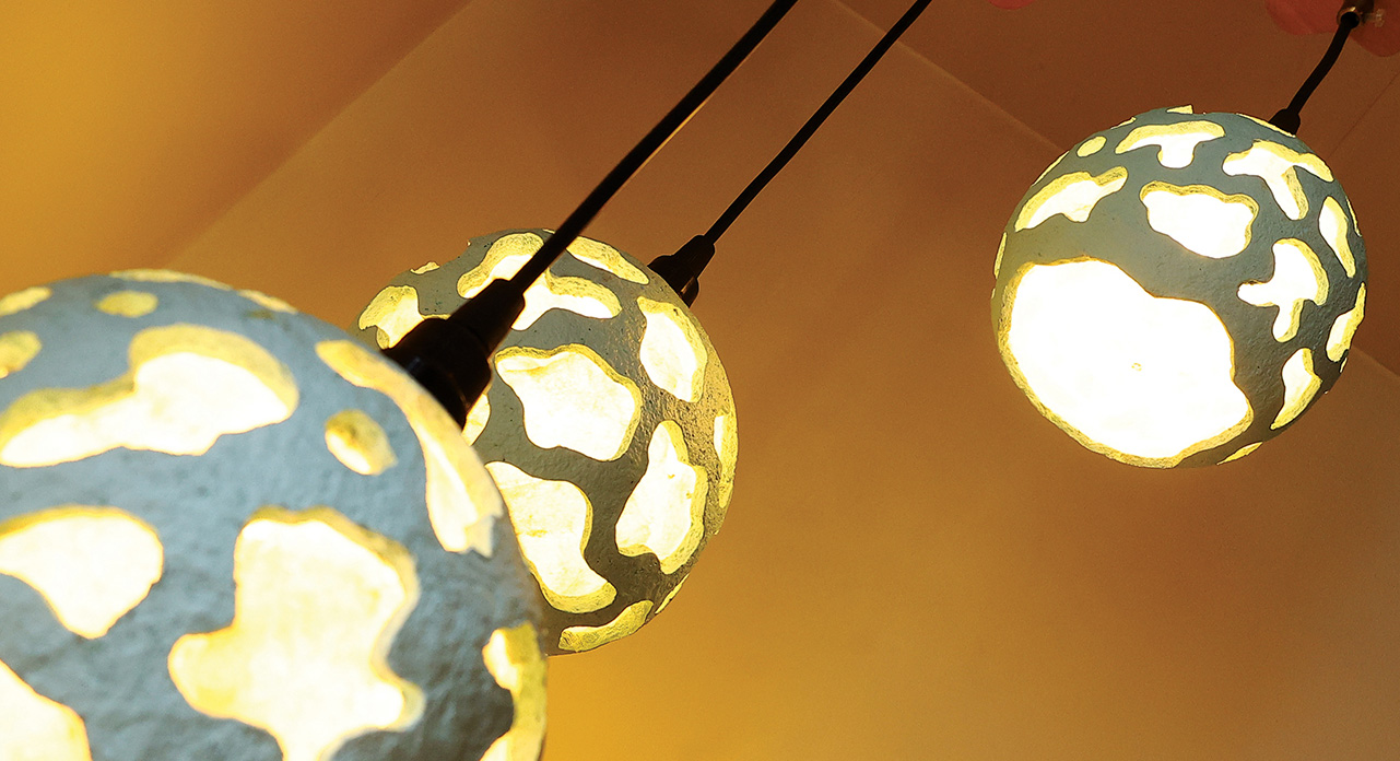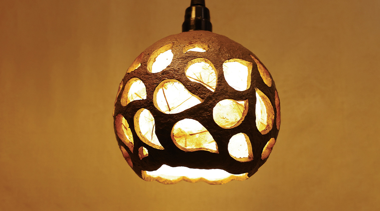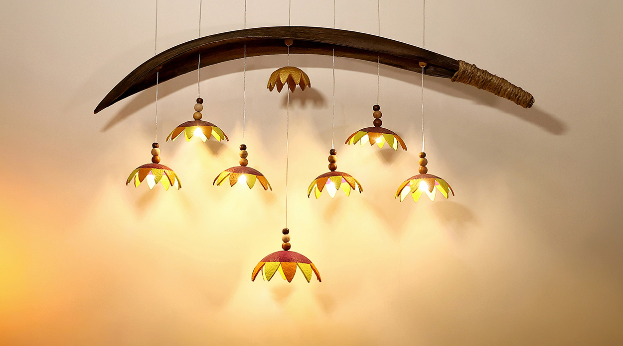 Crafting stellar art forms from papermâché (packaging-industry waste), coconut tree spathe and tree branches.